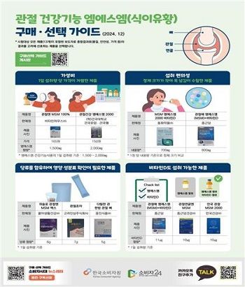 한편 ▲엠에스엠 관절 건강기능식품 주요 시험평가 결과, ▲엠에스엠 관절 건강기능식품 종합결과표, ▲엠에스엠 관절 건강기능식품 구매 및 섭취가이드 등은 (메디컬월드뉴스 자료실)을 참고하면 된다.