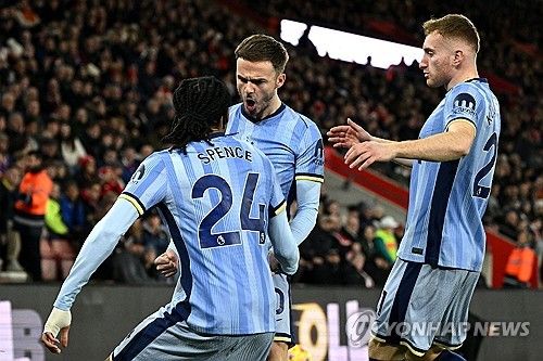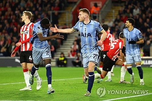 안지 포스테코글루 감독이 지휘하는 토트넘 홋스퍼는 16일(한국시간) 영국 사우샘프턴에 위치한 세인트 메리 스타디움에서 열린 사우샘프턴과의 2024-25시즌 잉글리시 프리미어리그(PL) 16라운드 원정 경기에서 제임스 매디슨, 손흥민, 데얀 쿨루세브스키의 득점을 묶어 5-0 대승을 거뒀다.