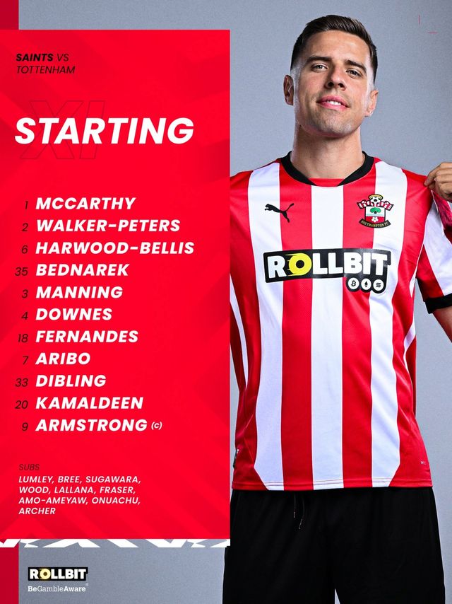 홈팀 사우샘프턴은 4-3-1-2 포메이션을 선택했다. 알렉스 맥카시가 골문을 지켰고 라이언 매닝, 얀 베드나렉, 테일러 하우드-벨리스, 카일 워커-피터스가 백4를 구축했다. 플린 다운스, 마테우스 페르난데스, 조 아리보가 중원을 맡았다. 타일러 디블링이 2선에서 최전방의 카말딘 술레마나와 아담 암스트롱 투톱을 지원했다.