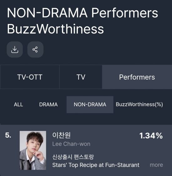(엑스포츠뉴스 이정범 기자) 이찬원이 비드라마 출연자 화제성 부문에서 존재감을 과시했다.