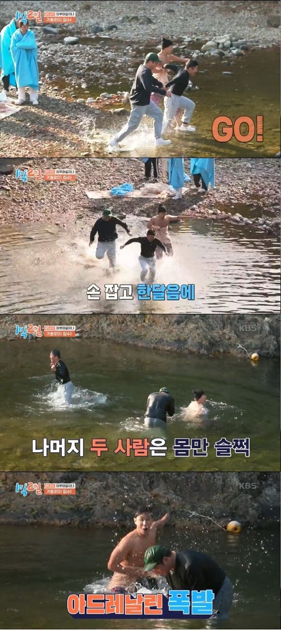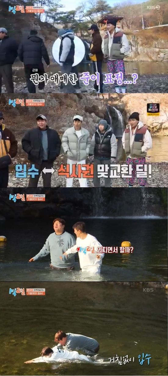 15일 방송된 KBS 2TV '1박 2일 시즌4'에서는 새 멤버 이준과 조세호의 첫 입수식이 진행돼 눈길을 끌었다.