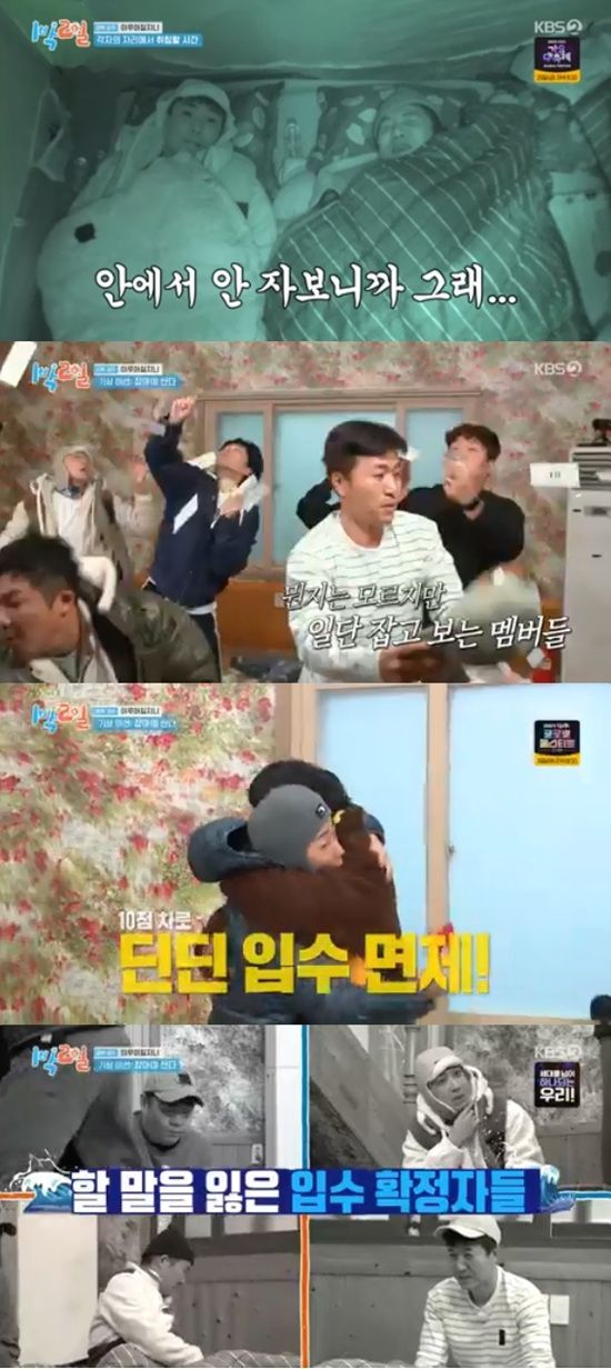멤버들은 다음날 아침 "합산 점수가 낮은 하위권 4명은 입수다"라는 소리를 듣고는 벌떡 일어났다.