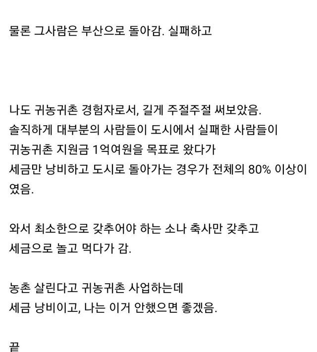 귀농자 입장에서 생각하는 귀농귀촌 실패 이유.