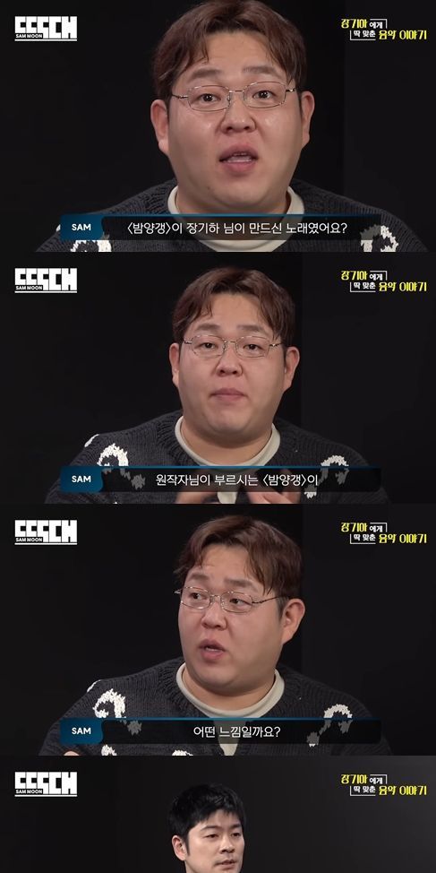 그런가 하면, 샘문은 "'밤양갱'이 장기하 님이 만드신 노래였냐"라며, 금시초문이라는 표정으로 장기하를 긁었다. 이어 샘문의 요청에 따라 장기하는 '밤양갱'의 한 소절을 불렀다.