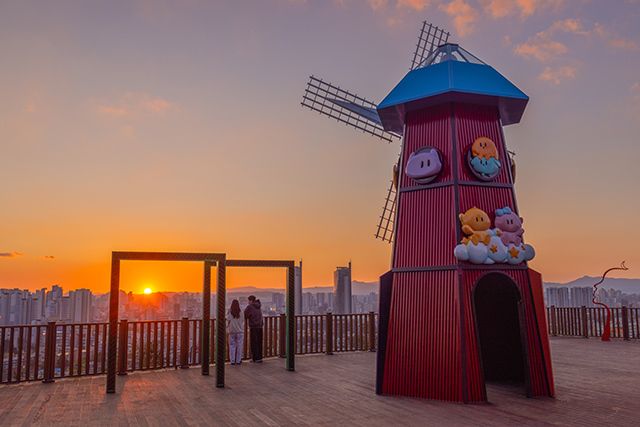 풍차 앞에서 바라보는 도시 풍경은 이곳까지 올라온 수고에 비해 과분하다. 서울이라면 남산이나 북한산에 오르는 수고를 감내해야 만날 수 있는 풍경이다. 날씨가 좋다면 여기서 인생 석양 풍경을 만날 수도 있다. 전망대 난간 앞에 나란히 서서 석양을 바라보는 연인의 모습이 사랑스럽다. 12월31일에 사랑하는 사람과 함께 한해를 떠나보내기에 이만한 장소가 또 있을까?