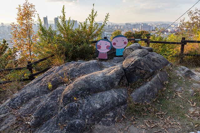 AR 벽화를 지나 풍차 반대편 방향으로 대동하늘공원에 오르면 연애바위를 볼 수 있다. 연애바위라는 이름이 붙은 이유가 재미있다. 좁은 집에서 대가족을 이루며 살다 보니 젊은 부부나 연인들이 사랑을 나눌 장소가 마땅치 않았다. 그럴 때마다 이들은 연애바위서 사랑을 속삭이곤 했다.