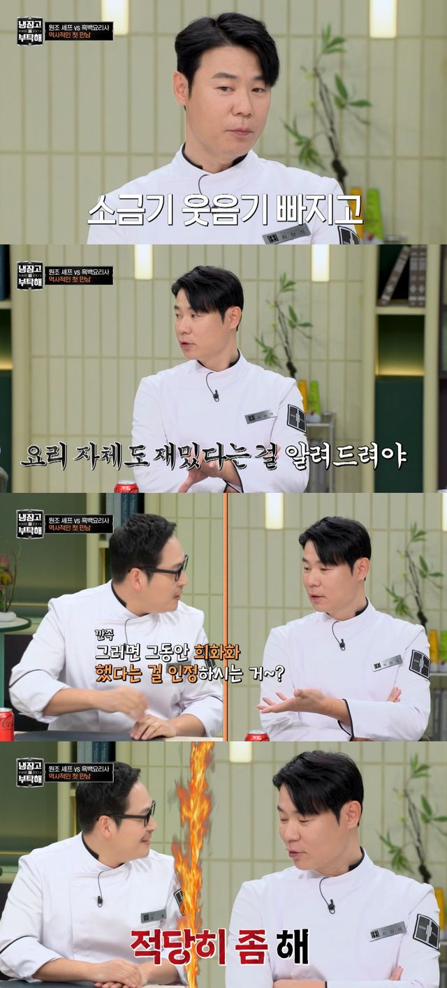 최현석은 "아니다. 요리 자체도 재밌다는 걸 보여드려야한다. 왜 희화화를 시키냐"고 이야기했다. 이에 김풍은 "그동안 희화화 했다는 거 인정하시는 거냐"고 또 돌직구를 날려 웃음을 안겼다.