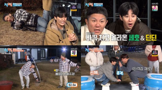 첫 번째 대결 ‘허수아비 물 배달’에서는 금세 감을 잡은 이준과 유선호의 활약으로 뉴페이스 팀이 승리했다. 승리를 자신했던 원년 멤버 팀은 온몸에 물을 뒤집어쓰는 등 큰 웃음을 선사했지만, 게임에서는 패하며 허탈함을 감추지 못했다.