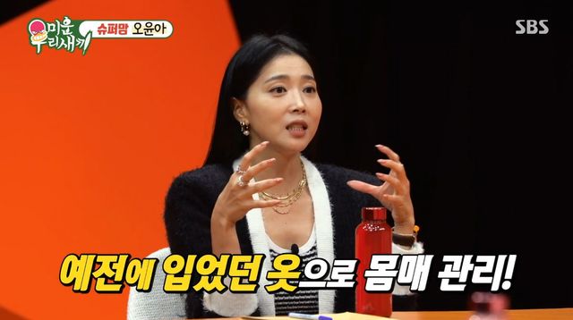 이어 몸매를 유지하는 비결에 대해 묻자 오윤아는 ‘20년 전 옷을 입으며 몸매를 체크한다 ’고 밝혔다. “저는 몸무게를 재지 않고 예전에 입었던 바지 타이트한 옛날 옷을 입어보며 사이즈를 체크한다. 어느 분위가 찌는지 체크해서 그 부위에 집중해서 운동한다”라고 설명했다.