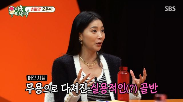15일 방송된 SBS ‘미운우리새끼’에는 오윤아가 스페셜 게스트로 출연했다. 이날 서장훈은 ‘황금 비율로 굉장히 유명하다’라고 오윤아를 소개하면서 “스스로 타고 났다’라고 생각하는 곳이 있냐”라고 물었다. 오윤아는 “좀 민망하긴 하지만, 저는 허리라인, 골반이 괜찮은 거 같다. 타고 나야하는 건데 그래서 운동을 해도 더 예쁘게 보이는 거 같다“라며 쑥쓰러운 듯 말했다.