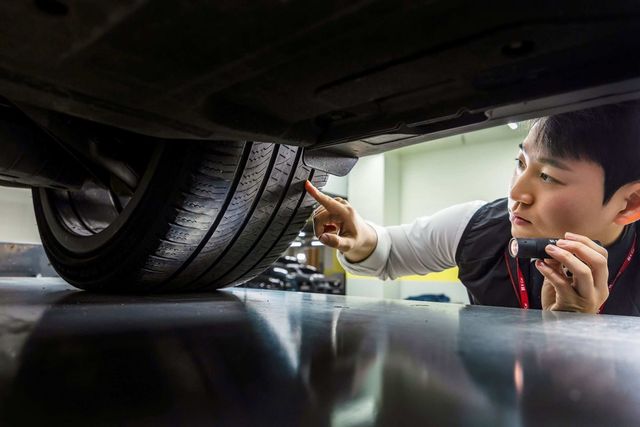 정비사가 타이어를 점검하는 모습 / 출처=케이카