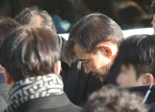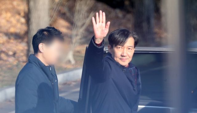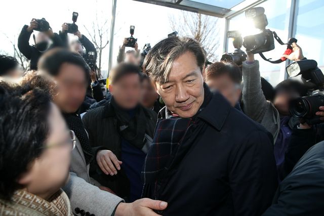 조 전 대표는 취재진에 입장을 밝히기 전 지지자들을 향해 허리를 굽히거나 이들과 악수를 나누며 인사했다.