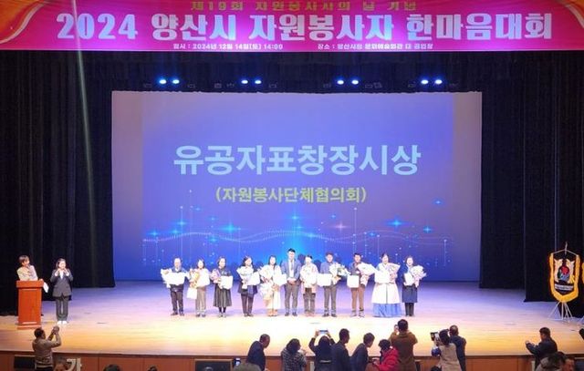 (사)양산사자원봉사단체협의회는 지난 14일 양산문화예술회관 대공연장에서 ‘2024 양산시 자원봉사자 한마음대회’를 열었다.