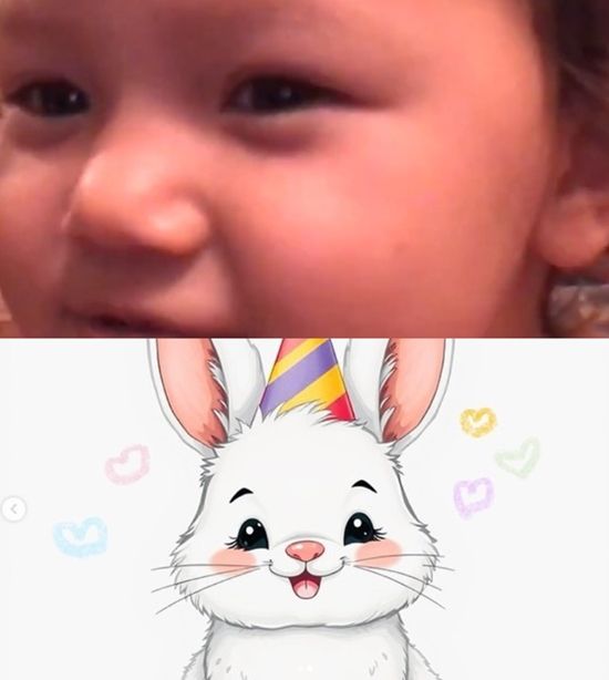또한 뉴진스의 트레이드 마크인 토끼가 꼬깔모자를 쓰고 있는 그림으로 민희진의 생일을 축하하고 있다.
