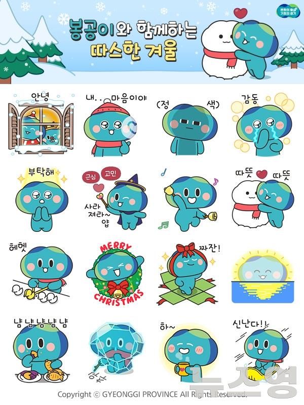 (뉴스영 이현정 기자) 경기도가 겨울철과 연말연시를 맞아 도정 캐릭터 ‘봉공이’를 활용한 16종의 움직이는 이모티콘을 무료 배포한다.