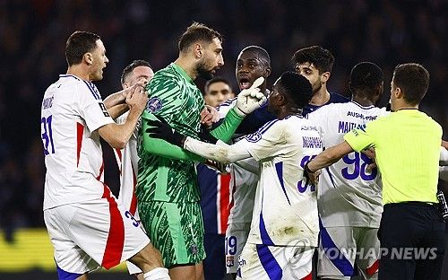리옹의 공격이 계속 이어졌다. 전반 42분 오른쪽에서의 크로스를 하키미가 헤더로 돈나룸마에게 주려고 했는데 약하게 향하면서 슈팅을 허용했다. 하지만 돈나룸마가 이를 지켜냈다.