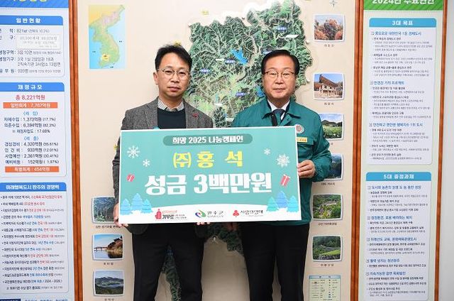 유희태 완주군수는 “지역사회를 위해 따뜻한 마음을 전해주신 ㈜홍석에 깊은 감사를 드린다”며 “기탁된 성금이 필요한 곳에 잘 전달돼 연말을 맞이하는 관내 저소득층이 따뜻한 겨울을 보낼 수 있도록 지원하겠다”고 말했다.