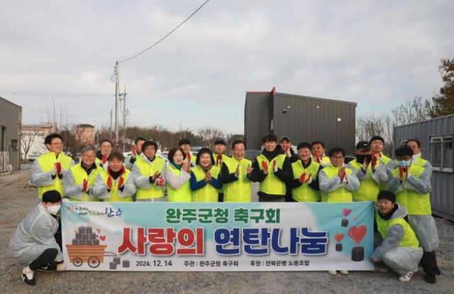 [파이낸셜경제=김영란 기자] 완주군청 축구회가 전북은행 노동조합의 후원을 받아 지난 14일 ‘사랑의 연탄 나눔 행사’를 개최했다.