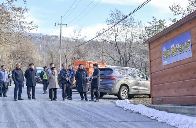 [와이뉴스] 전진선 양평군수가 9일 겨울철 강설에 대비해 군민들의 통행 불편을 최소화하고 안전한 도로환경을 확보하고자 옥천면 설매재 고갯길 제설취약구간에 설치된 자동염수분사장치 현장을 찾았다.