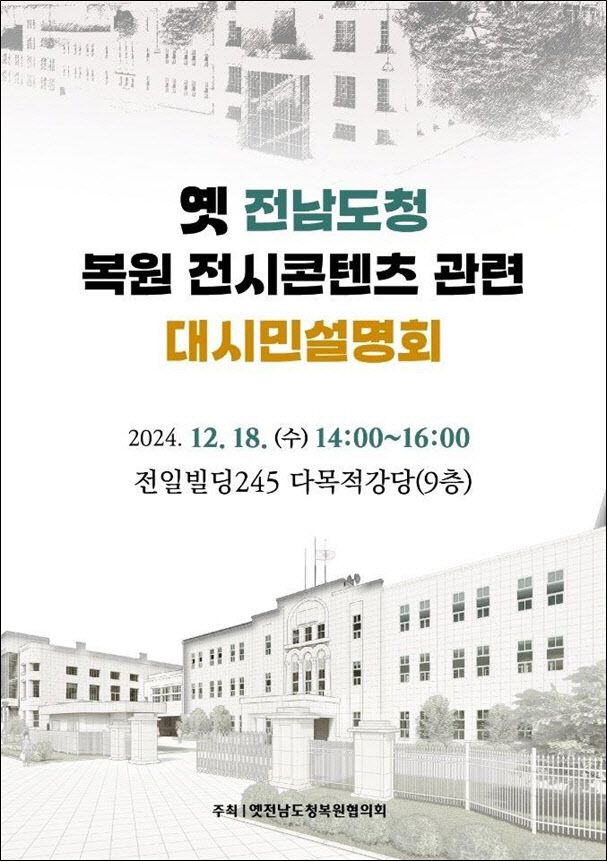 문체부 관계자는 “설명회를 통해 나오는 의견을 적극 검토하고 당사자와 전문가, 시민들과 긴밀히 소통해 옛 전남도청 복원에 5.18민주화운동의 숭고한 역사적 가치를 온전히 반영할 수 있도록 노력하겠다”고 말했다.