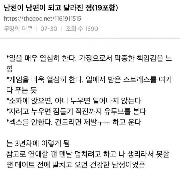 조기폐경 온 후 남편에게 말 안하게 된 아내