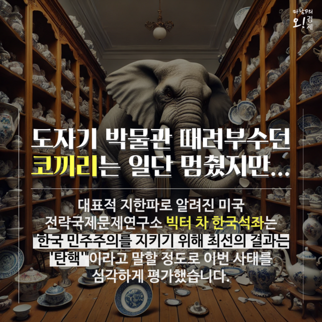 이런 가운데 대표적 지한파로 알려진 미국 전략국제문제연구소 빅터 차 한국석좌가 "한국 민주주의를 지키기 위해 최선의 결과가 '탄핵'"이라고 말한 것도 주목할 대목이다.