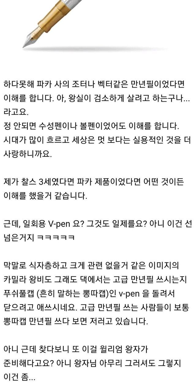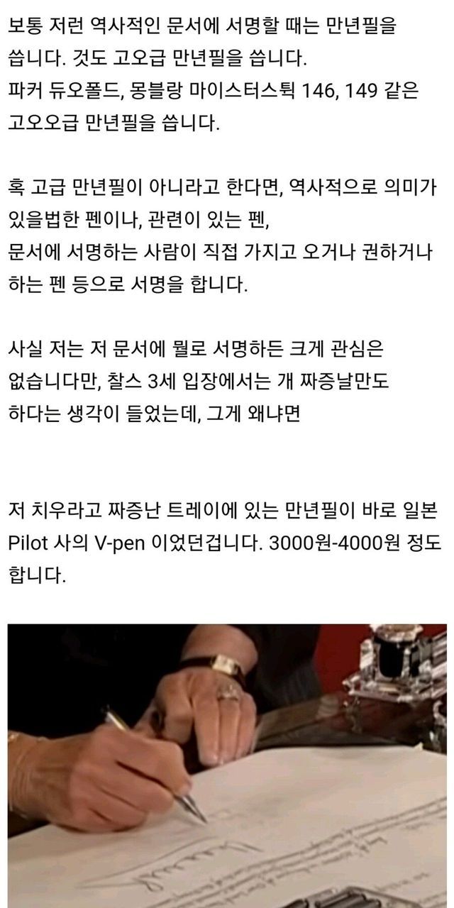 만년필 덕후가 본 찰스 3세 짜증의 원인.