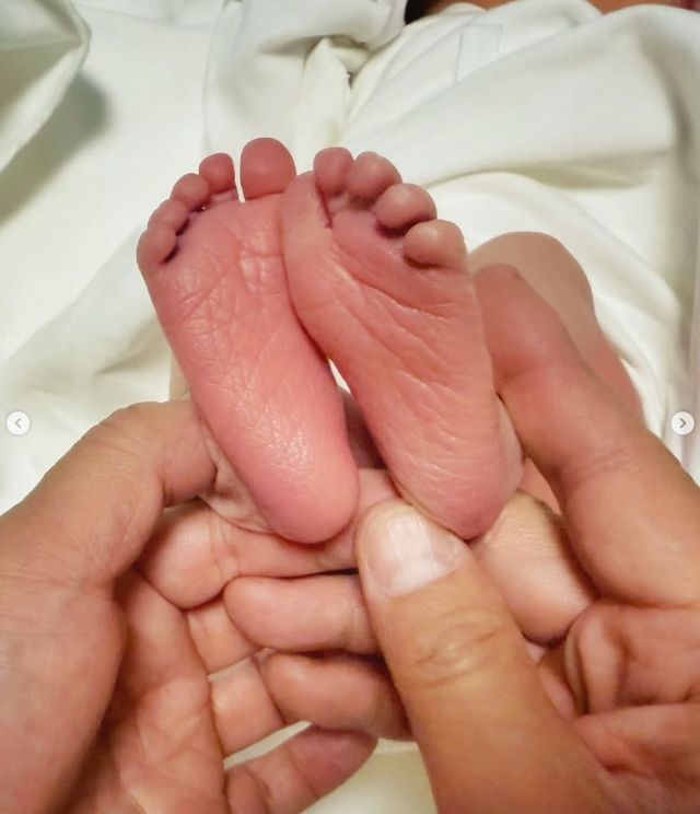 공개된 사진에는 류시원이 딸의 작은 발을 두 손으로 감싸고 있는 모습이 담겼다.
