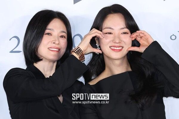 배우 송혜교가 '학창 시절'을 언급하는 전여빈을 만류하며 웃음을 지었다.