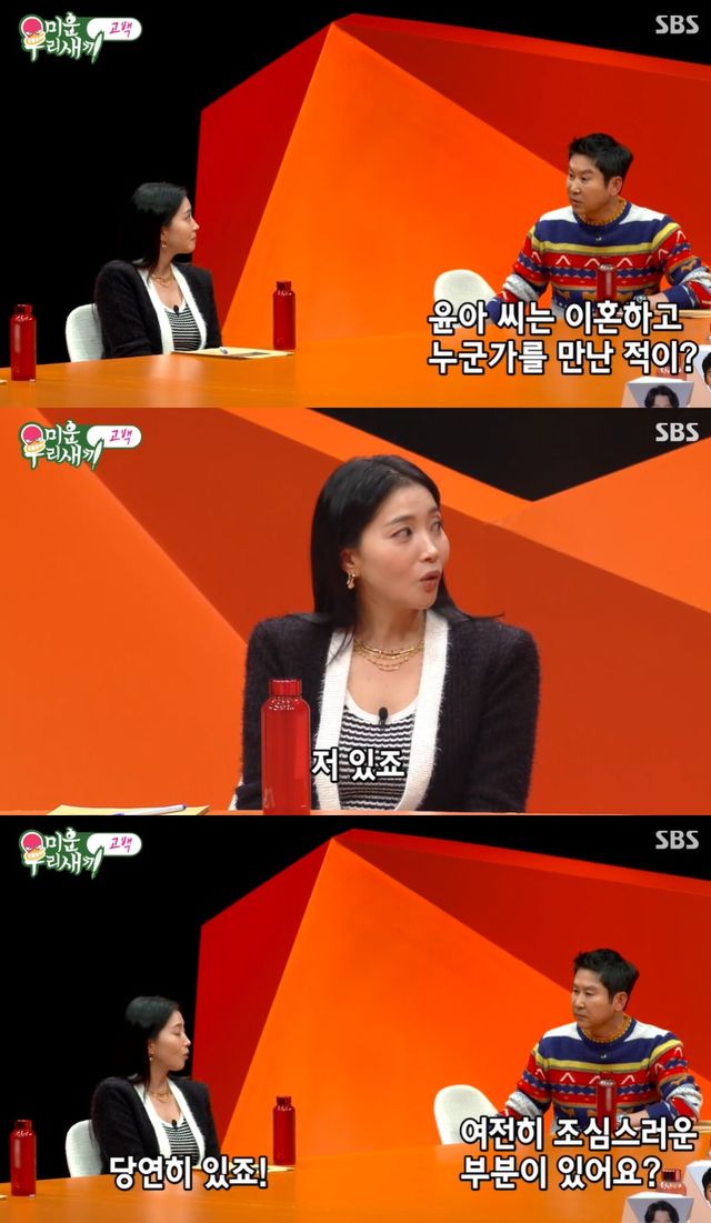 이혼 후 누군가를 만난 적이 있냐는 질문에 오윤아는 "있다"고 대답하더니 "조심스러운 부분이 있다"고 고백했다.