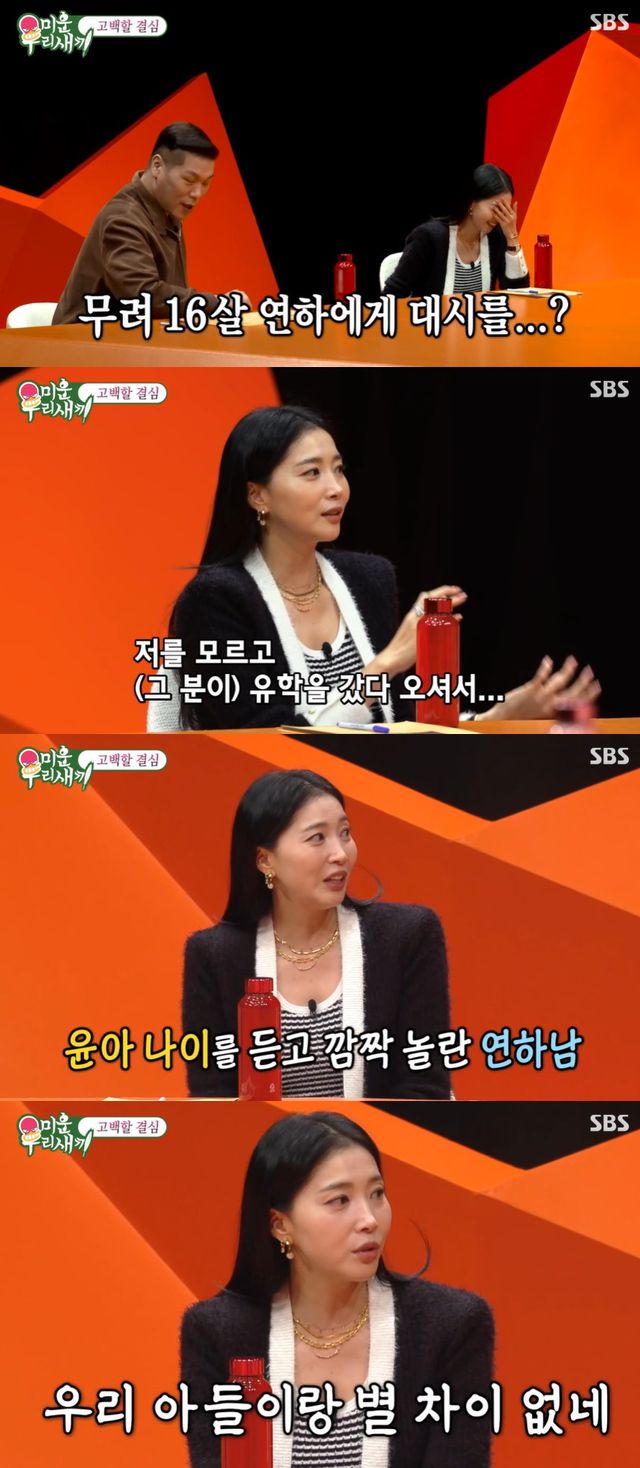 반대로 연하남에 나이를 물어봤다는 오윤아는 "'우리 아들이랑 별 차이 없네'라고 하니까 너무 놀라더라"고 비화를 밝혔다. 신동엽은 "그래서 조심스럽게 만남을 가졌냐"고 농담을 건넸고, 오윤아는 "아니다. 바로 일어나더라"고 말해 웃음을 자아냈다.