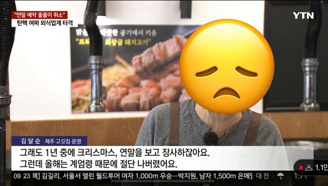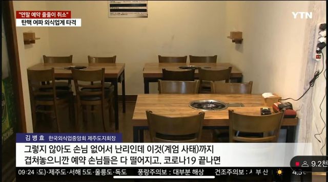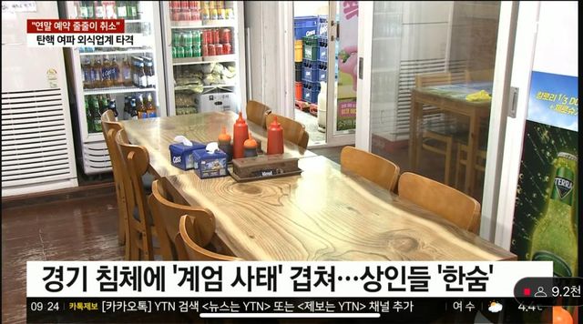 “탄핵 여파로 외식업체 타격”라고 시작해서 내용은 계엄으로 인한 영향으로 끝나네
