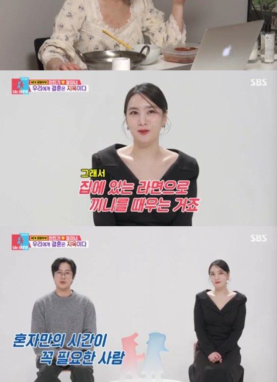 정민기는 "신혼 초부터 아내는 혼자만의 시간이 꼭 필요한 사람이다. 그런데 그런 시간을 자주 필요로 한다"고 했고, 정미녀는 "아이가 자고 나서부터 온전히 제 시간이다. 내가 먹고 싶은거 먹고 하고 싶은거 하는 3시간 정도가 너무 소중한 시간"이라고 했다.