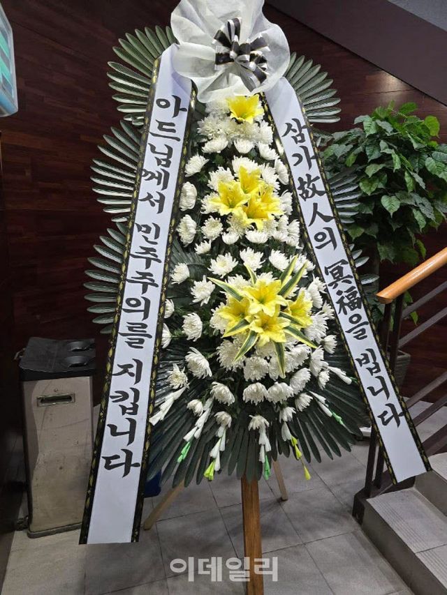 이 의원은 지난 15일 자신의 사회관계망서비스(SNS)에 이 같은 내용이 담긴 화환 사진을 올리고 “이른 아침 마지막 가시는 길을 보고 오후 탄핵 표결을 마치고 돌아왔을 때 이 조화를 발견하고 큰 위로를 받은 듯 울컥했다”며 이같이 적었다.