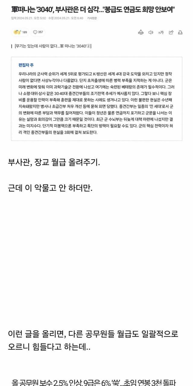 군인 월급 오른다 했을 때 당연히 해줄 거라 생각한 것