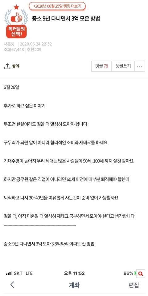 중소기업 9년 다니면서 3억 모음.