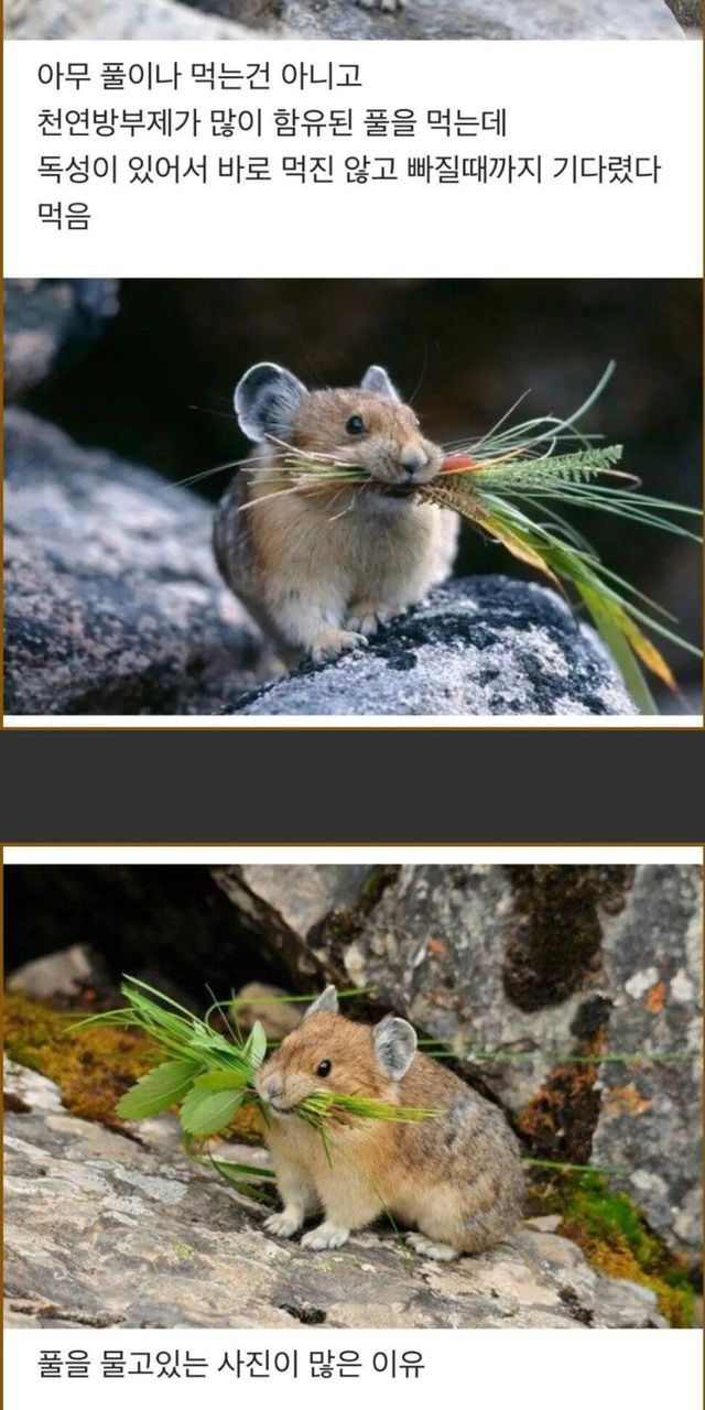 새앙토끼가 입에 풀을 물고 다니는 이유.