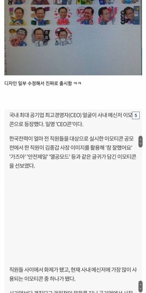 한전 사장 얼굴딴 이모티콘 출시.