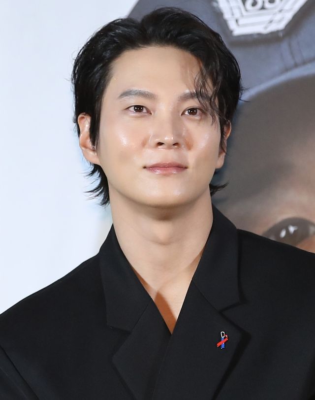 배우 주원이 지난달 8일 서울 용산구 CGV 용산아이파크몰에서 열린 영화 '소방관'(감독 곽경택) 제작보고회에서 소방관 배지를 달고 미소를 짓고 있다. / 뉴스1