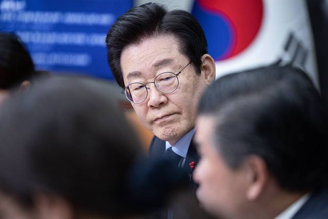 이재명 더불어민주당 대표가 지난 16일 오후 서울 여의도 국회에서 제임스 김 주한미국상공회의소(AMCHAM) 회장의 발언을 듣고 있다 / 뉴스1