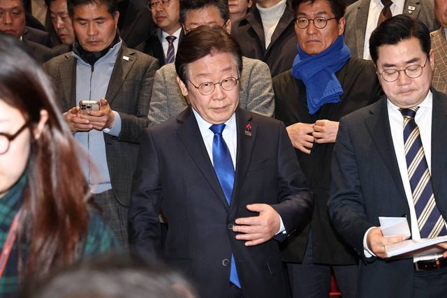 윤석열 대통령에 대한 탄핵소추안이 가결된 지난 14일 이재명 더불어민주당 대표를 비롯한 의원들이 윤석열 대통령 탄핵소추안 가결 후 본회의장을 나서고 있다. 탄핵안은 재적의원 300명이 모두 투표에 참여해 찬성 204표, 반대 85표, 기권 3표, 무효 8표로 가결됐다 / 뉴스1
