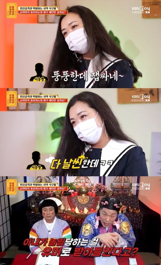 이어 사연자의 남편과 시가 식구들에 "밖에서 그렇게 할 수 있냐. 집안 망신이다"라며 일침을 날렸다. 이수근 역시 "한 번뿐인 인생 사랑 받고 살아야 한다. 정신 똑바로 차려라"라며 조언했다.