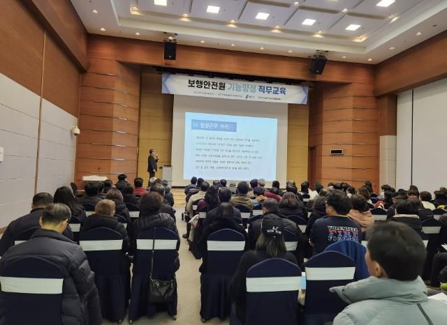 시는 현장에 배치할 ‘보행 안전원’의 전문성을 강화하기 위해 지난 14일 직무교육을 진행하고, 교육 이수증을 교부했다.