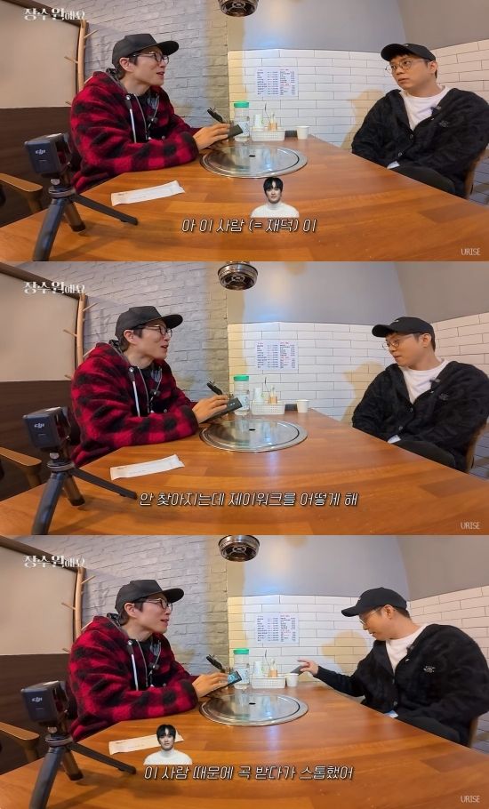 그러자 장수원은 “이 사람(김재덕)이 안 찾아지는데 제이워크를 어떻게 하냐. 이 사람 때문에 곡 받다가 스톱됐다. 그래서 제이워크를 혼자 해야하나 고민”이라고 털어놨다.