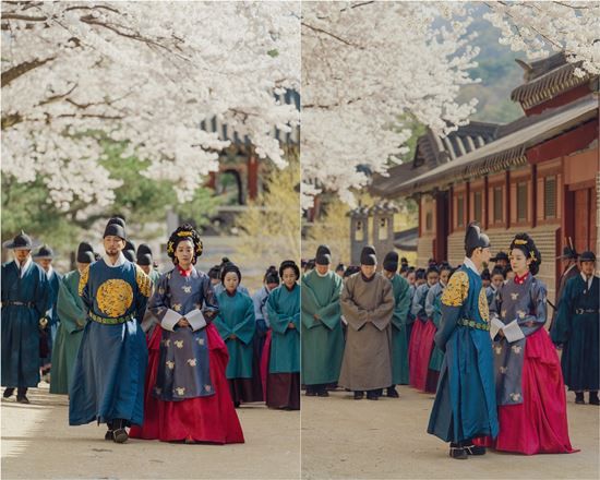 고려 최고 명문거족 민제의 딸 원경과 신흥 무인 세력의 중심인 이성계의 아들 이방원. 격랑의 시절 속에서 두 사람은 마침내 왕과 왕비가 되고 꿈꾸던 세상의 한가운데 서게 된다. 17일 공개된 이들 부부의 이미지에선 남녀의 사랑을 뛰어 넘어, 부부로서 함께 했던 단단한 세월을 느끼게 한다. 봄볕이 따스한 어느 날, 만개한 벚꽃 아래 두 손을 꼭 맞잡고 서로를 바라보는 눈빛엔 로맨틱한 분위기 그 이상이 담겨있기 때문이다.