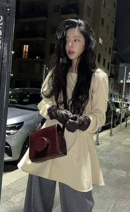 사진 속 장재인은 풍성한 긴 머리를 늘어뜨리고 베이지 색 퍼프 블라우스와 회색 바지를 매치했다. 여기에 브라운 가죽 장갑과 버건디 색 백으로 포인트를 줬다.