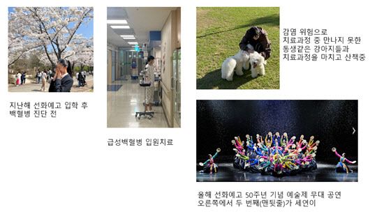세연이는 올해 초, 이식 후 면역억제요법을 하던 중에 다시 신입생이 되어 1학년 학교생활을 시작했다. 이식 후 최소 6개월까지는 여러 위험으로 학교생활이 어렵지만, 세연이의 배움을 향한 강한 의지에 가족도 의료진도 최선을 다했다. 꿈에 그리던 학교 예술제 무대에도 서게 되었다. 개교 50주년 공연은 물론 국립극장 공연까지 마쳤다.