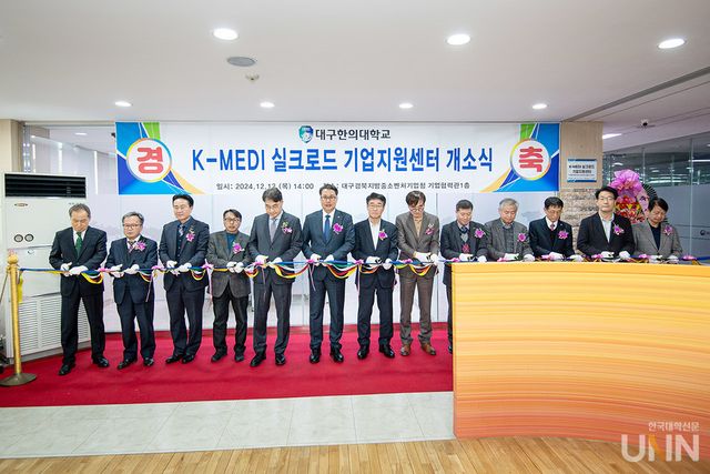 [한국대학신문 이정환 기자] 대구한의대학교(총장 변창훈)는 지난 12일 지역 중소기업의 글로벌 시장 진출 지원을 위한 ‘K-MEDI 실크로드 기업지원센터’를 대구경북지방중소벤처기업청 1층 기업협력관에 지원센터를 개소했다.