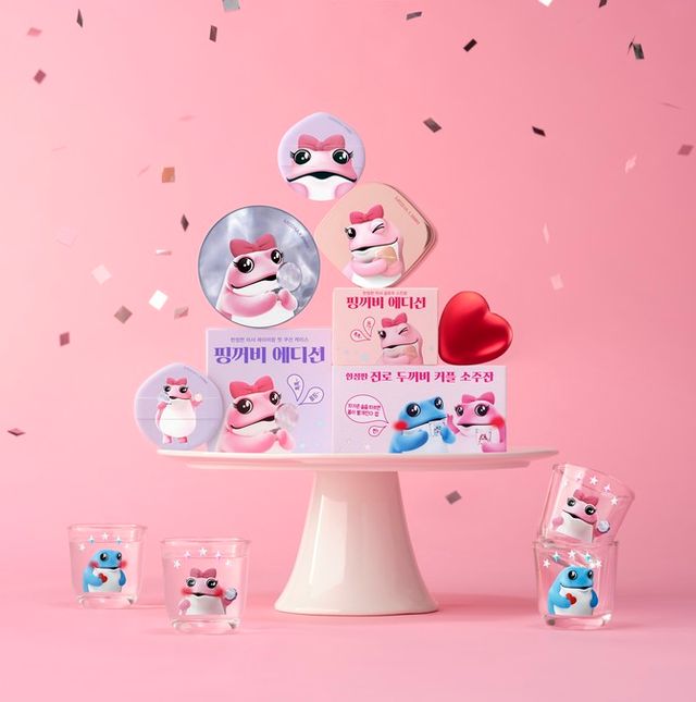 지난 2일 화장품 브랜드 '미샤(MISSHA)'와 협업해 한정판 화장품 2종을 G마켓 라이브 방송에서 처음 소개했다. 라이브 방송 누적 시청자수 43만 명을 돌파하며 높은 인기를 증명했다. 연말 콘셉트인 이번 협업은 △쿠션팩트와 퍼프 △수분크림 △두꺼비 커플 변온 소주잔 △핑꺼비 캐릭터 담요 등을 선보였다.
