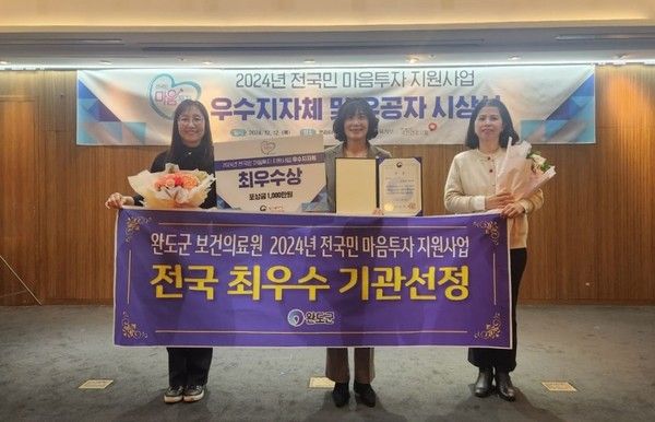 [투어코리아=이창식 기자] 전남 완도군은 최근 보건복지부 주관 ‘2024년 전 국민 마음 투자 지원사업’ 평가에서 최우수 지자체로 선정돼 최우수상을 수상했다.